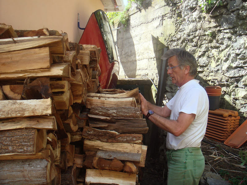 Madeira na Madeira. Oftewel Hout op Madeira. Ook op Madeira hebben we een winter. Niet zo een als jullie kleumers in Nederland nu ondervinden. Nee, meer een dipje in de temperatuur en wat meer regen. Die regen is niet zo erg, vooral ook omdat het spreekwoord ‘na regen komt zonneschijn’ (‘en daarna weer regen’ zoals mijn vader placht te zeggen) hier wel erg letterlijk genomen kan worden. De wat lagere temperatuur laat zich eigenlijk alleen na zonsondergang voelen. Dan moet er een vuur worden gestookt. Dat vinden we helemaal niet erg, maar af en toe moet wel de houtvoorraad worden aangevuld. Dan bellen we Celestino en die komt met een klein vrachtwagentje, rijdt achteruit onze steeg in en vooruit met gekiepte bak weer omhoog. Het resultaat is een grote berg hout. En dan begint het werk. We moeten het hout achter het huis naar de houtopslag brengen, ter hoogte van de eerste verdieping. Beetje zwaar, beetje veel, en deze keer voor hetzelfde geld nog veel meer dan de vorige keer. Onze stijgende populariteit bij de lokale bevolking moeten we met een zere rug bekopen. Madeira na Madeira is nodig, maar geen pretje.